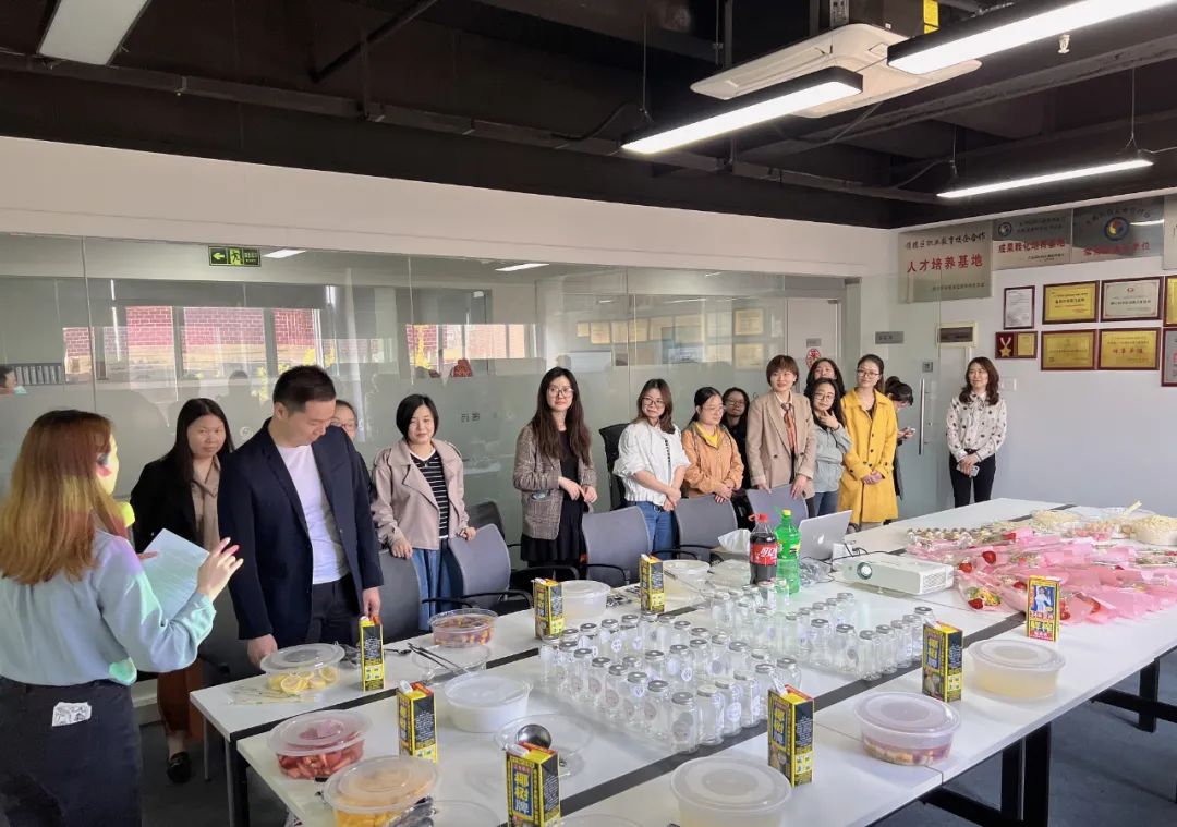 在全體女神的歡呼聲中,霍男神眾望所歸,首先登場為營銷中心總經理陳廣明女神特調一杯“初戀的味道”,并搭配著美麗的鮮花和甜蜜的巧克力,貼心男神的稱呼果然名不虛傳;接著,男神們大顯身手,紛紛調制完成了男神專屬的“快樂水”,送給了分外幸運的女神們。